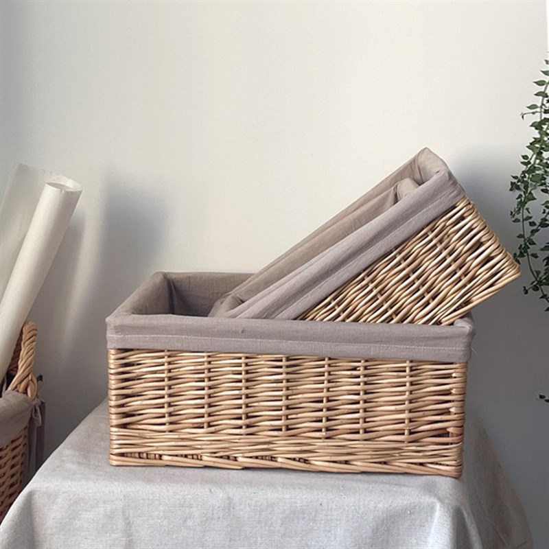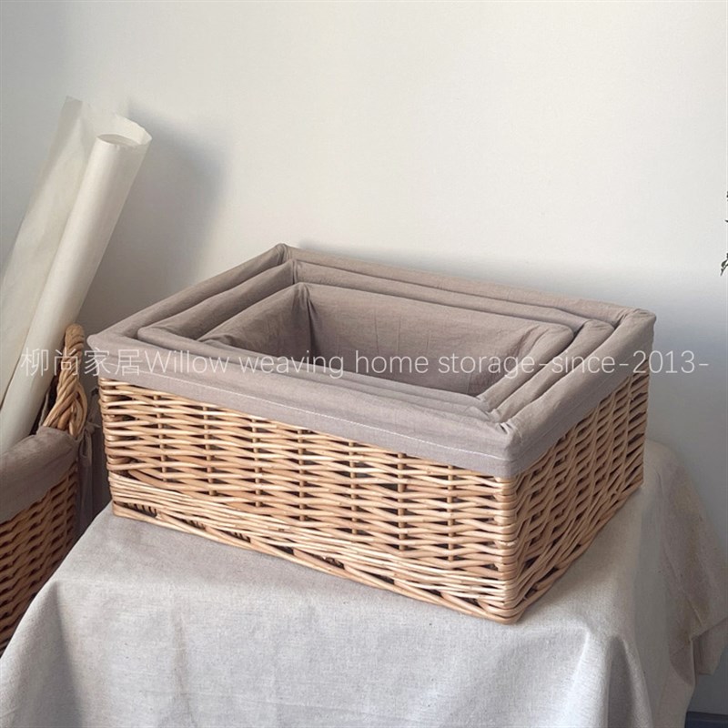 天然柳藤手工编织长方形收纳筐篮简约书桌茶几边角玄关杂物收纳篮