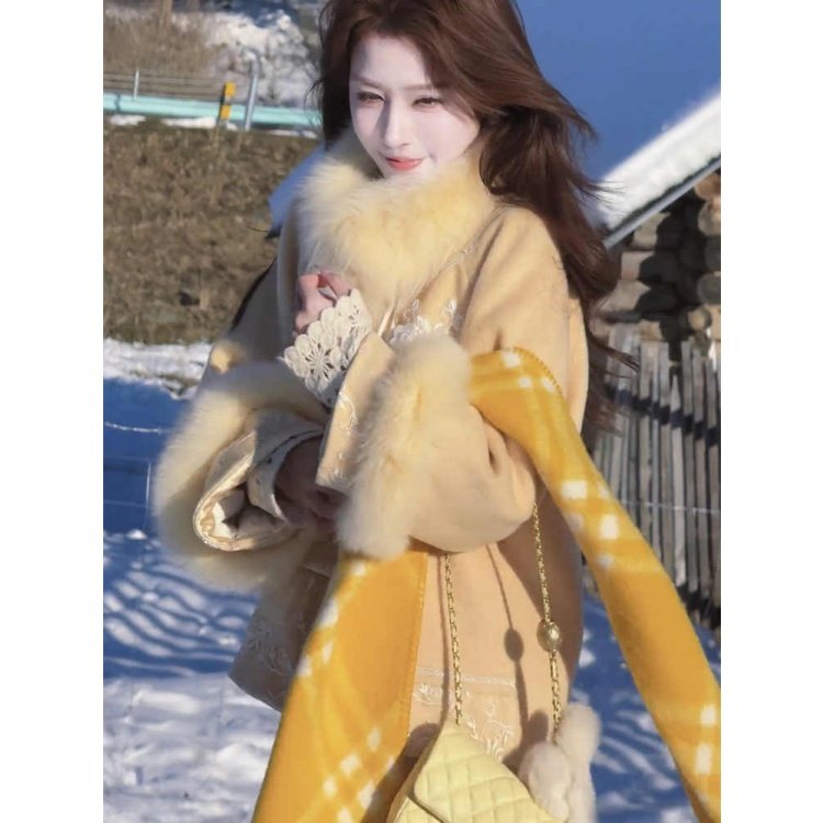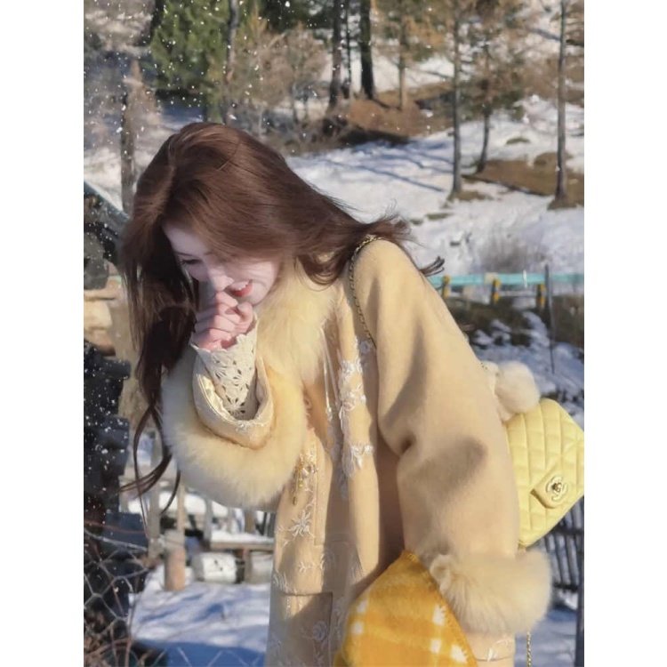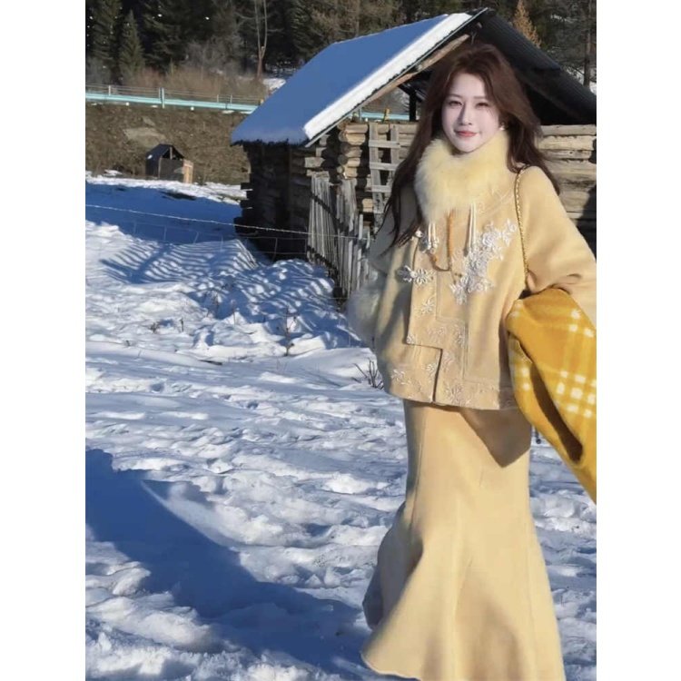 刺绣盘扣保暖外套半身裙绝美套装
