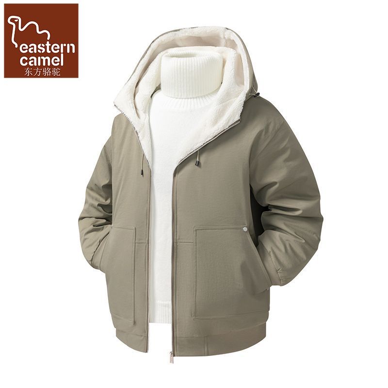 秋冬款连帽羽绒棉服男青少年纯色简约时尚加厚棉衣男潮流棉服外套