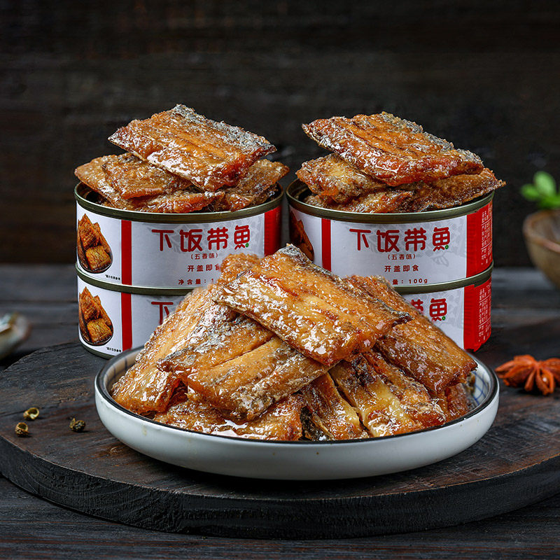 即食五香带鱼罐头海鲜熟食麻辣香酥网红小零食罐装黄花鱼肉下饭菜