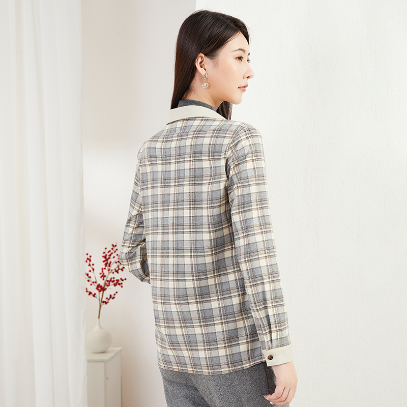 璐丝百丽春秋新款长袖气质商务衬衣上衣女通勤洋气磨毛女士衬衫