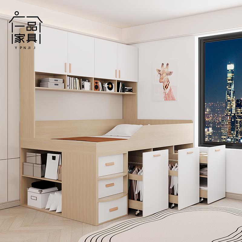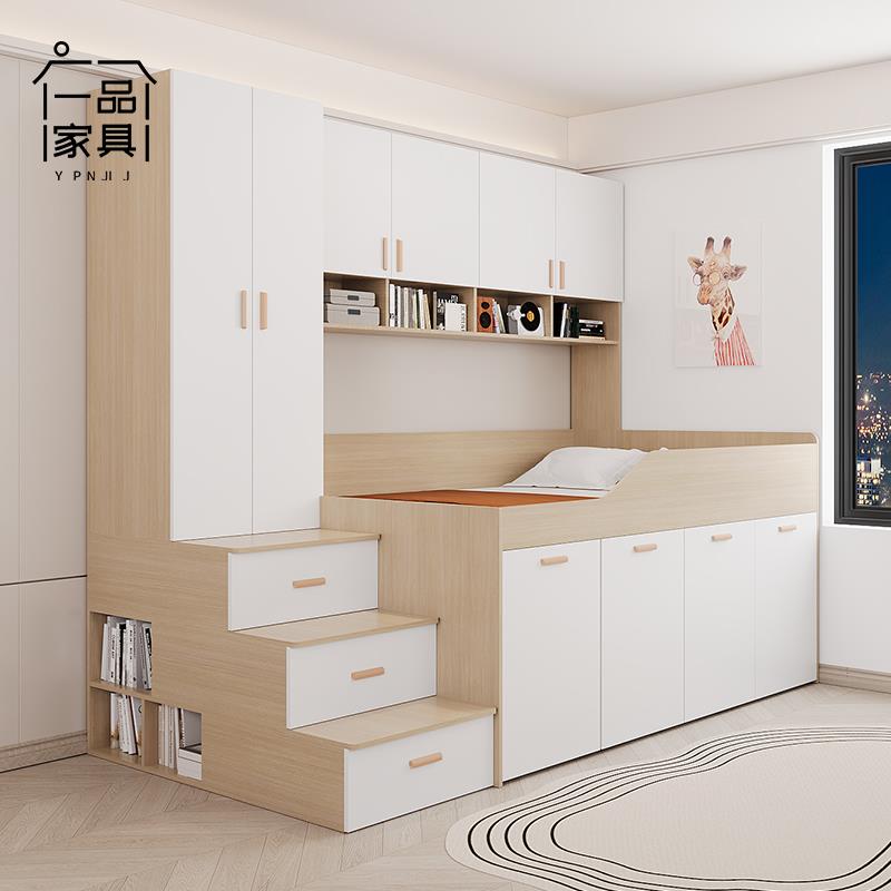 定制半高床抽拉柜书桌一体式收纳衣柜床儿童房榻榻米高箱体踏步床