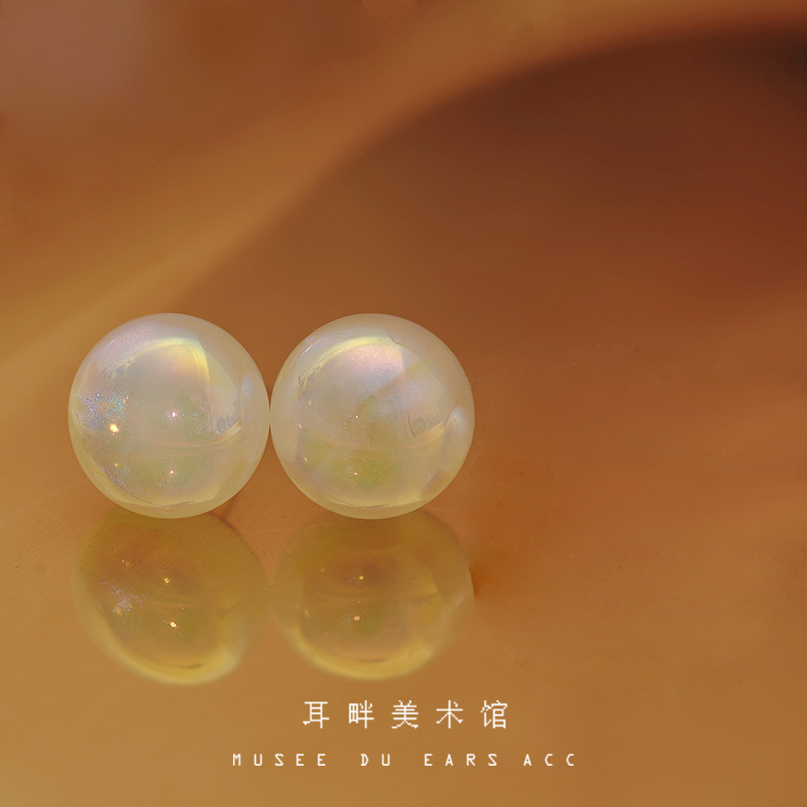 B简约幻彩极光人鱼姬人造珍珠耳环轻奢高级感秋冬的耳钉独特法式