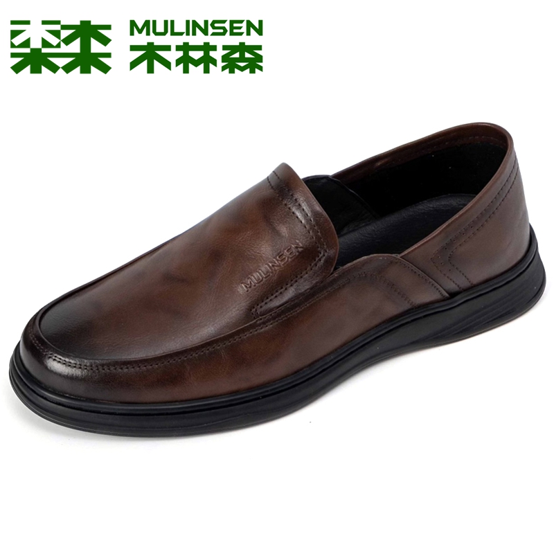 木林森男鞋商务休闲皮鞋舒适一脚蹬懒人套脚百搭中年软底爸爸单鞋