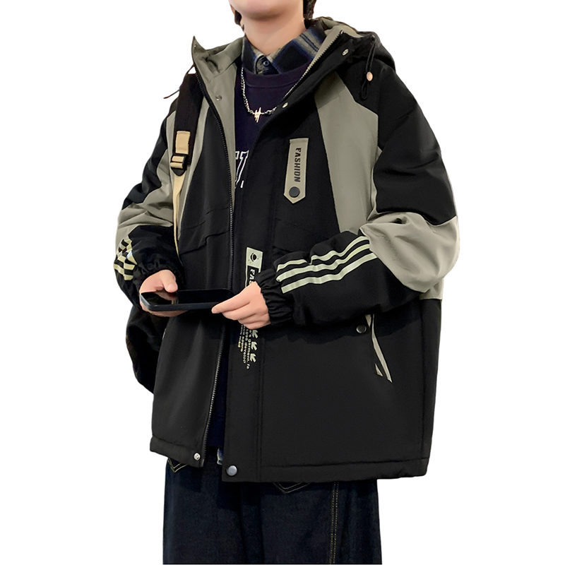 以纯加绒连帽夹克保暖棉衣服男款