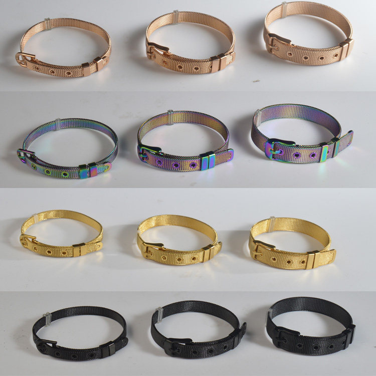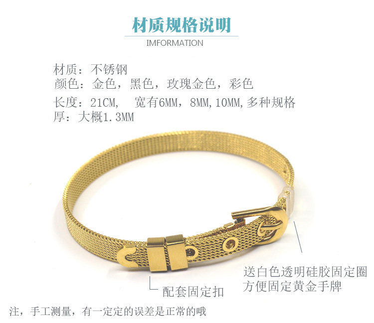 表链式钛钢网带手链6mm8mm10mm不锈钢表带男女可调节手牌网织手链