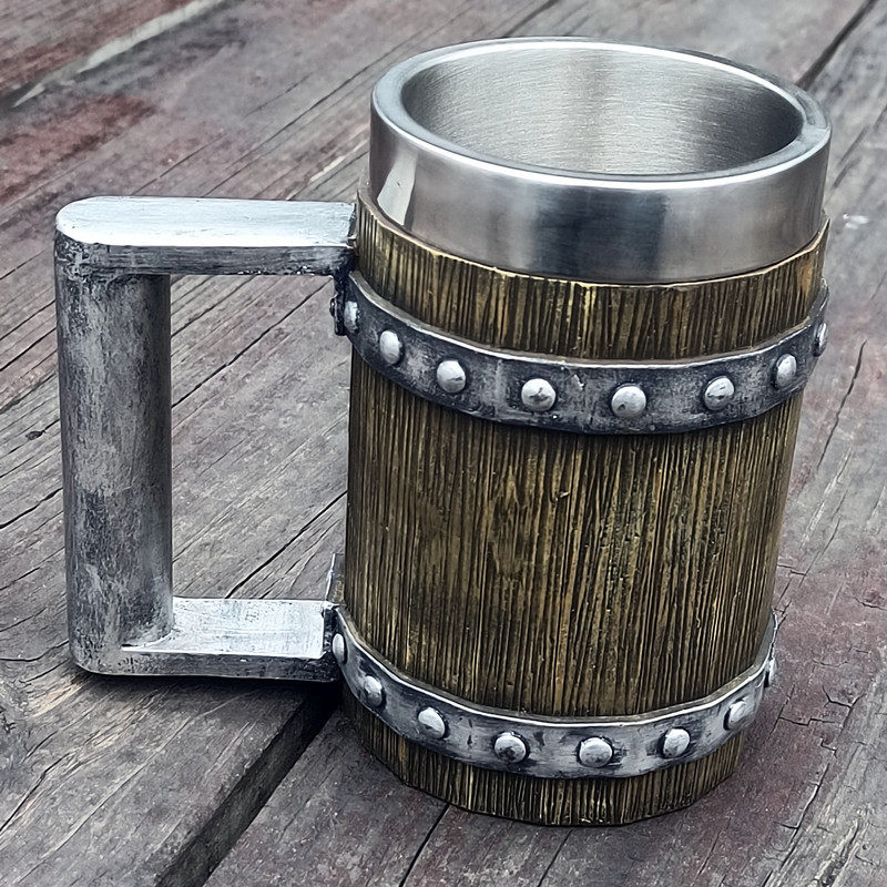海贼王动漫同款道具仿真木桶啤酒杯酒吧扎啤不锈钢水杯复古马克杯