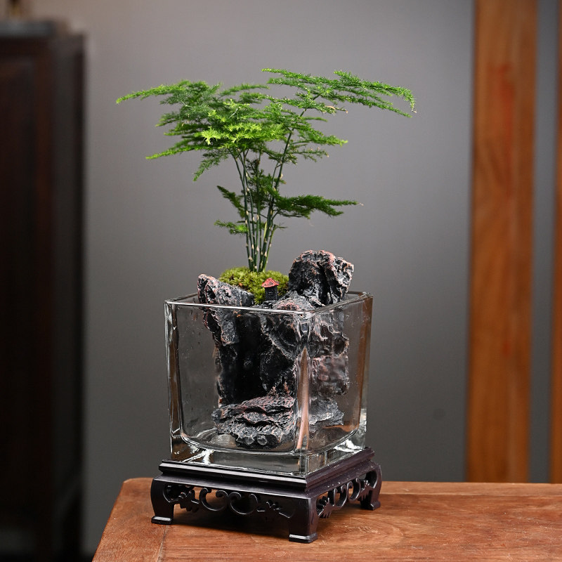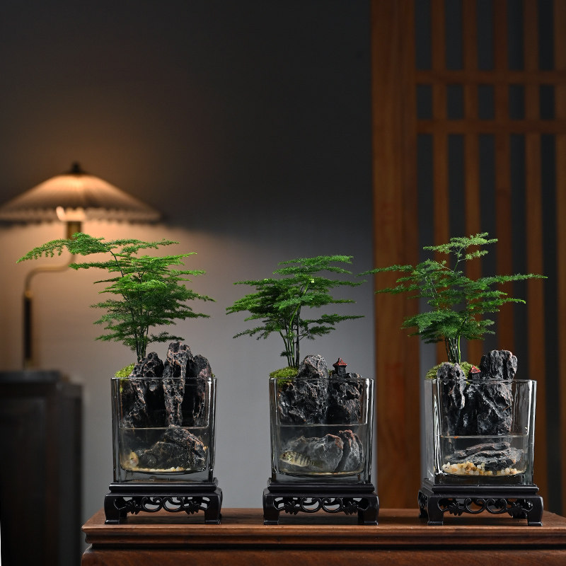 苔藓文竹微景观生态瓶桌面迷你小盆栽办公室内创意造景绿植物摆件