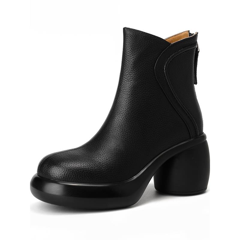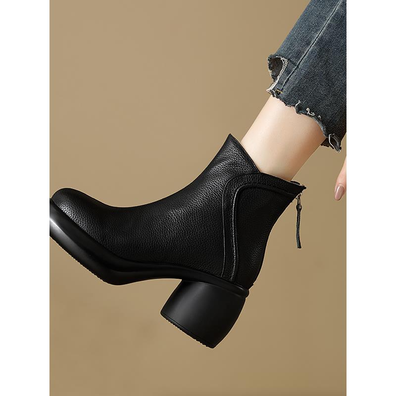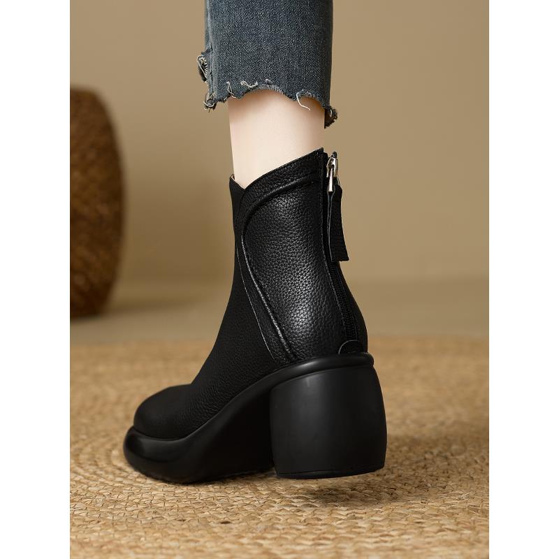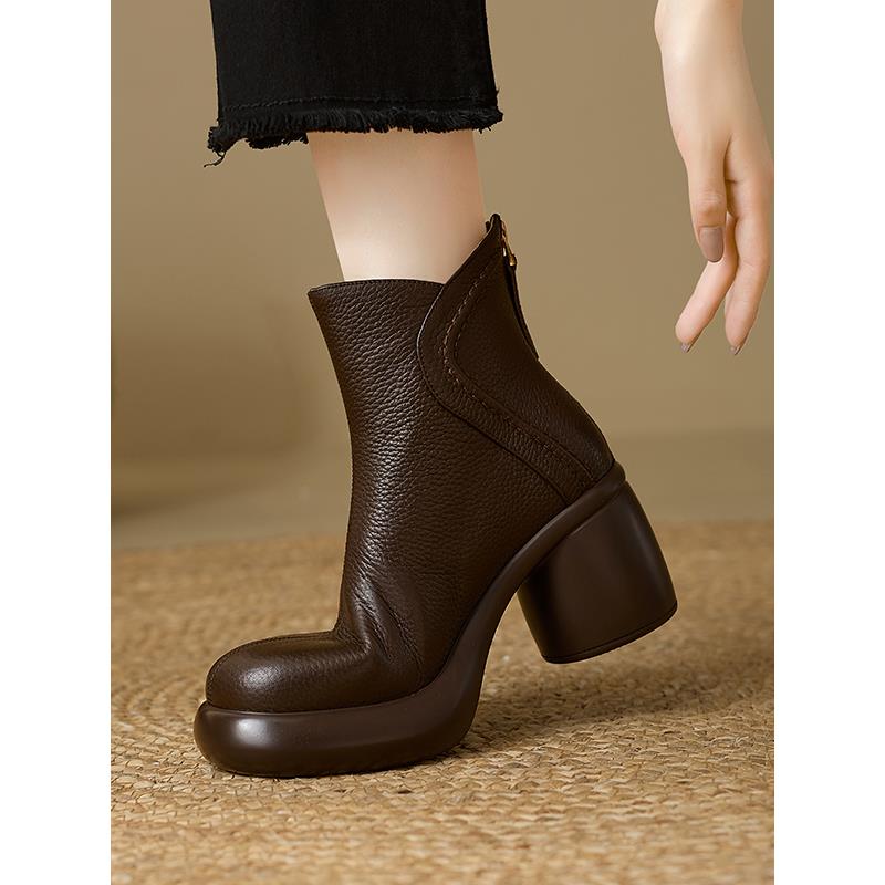 法式复古小踝靴秋冬羊皮马丁靴防水台粗跟高跟短靴女厚底软底裸靴