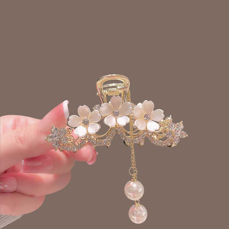 甜美花朵半扎发流苏茉莉花发夹高马尾抓夹防塌固定后脑勺鲨鱼夹