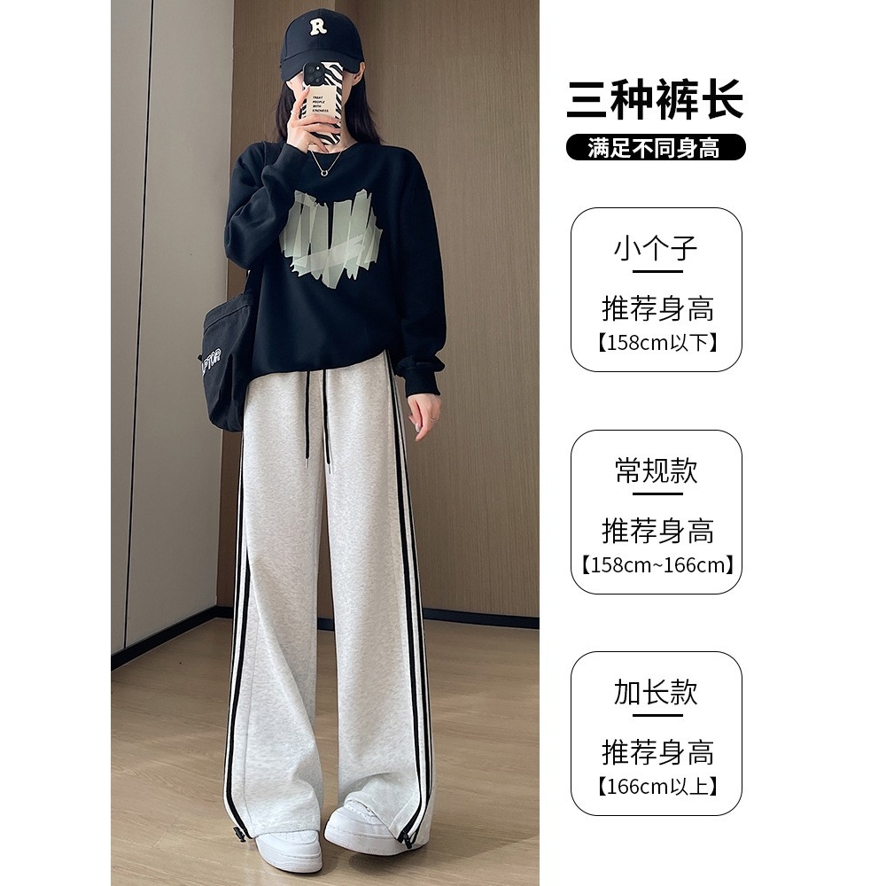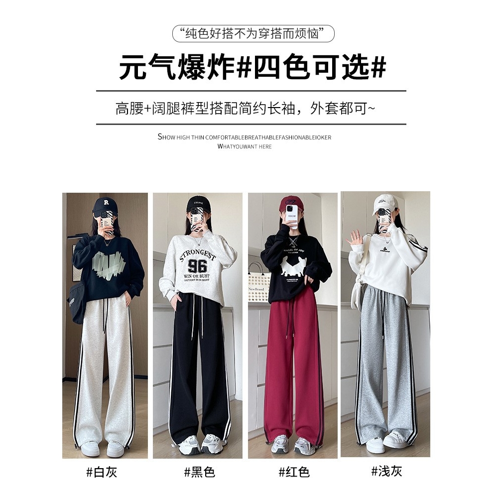 白色阔腿裤女新款2025春秋美式高腰运动卫裤条纹宽松直筒休闲AA8