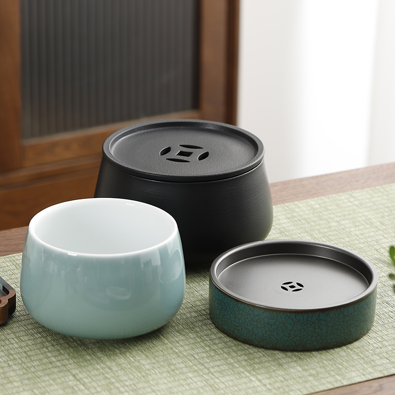 茶渣缸茶洗壶承家用特大号陶瓷禅意窑变黑陶洗杯绿釉带盖建水茶盂