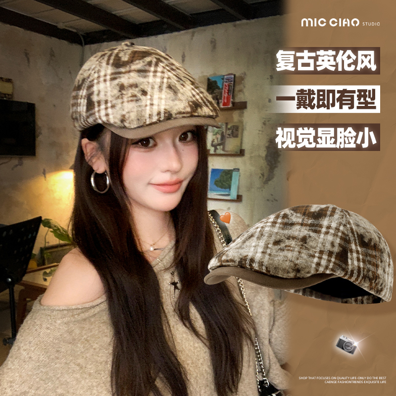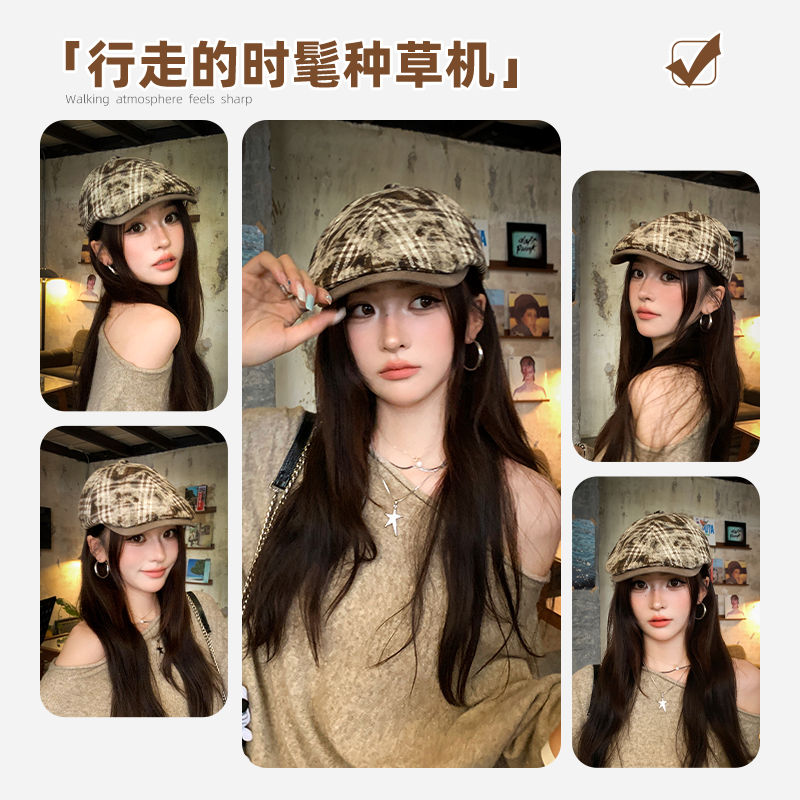 2025新款前进帽女日系复古大头围贝雷帽子显脸小春秋季反戴鸭舌帽