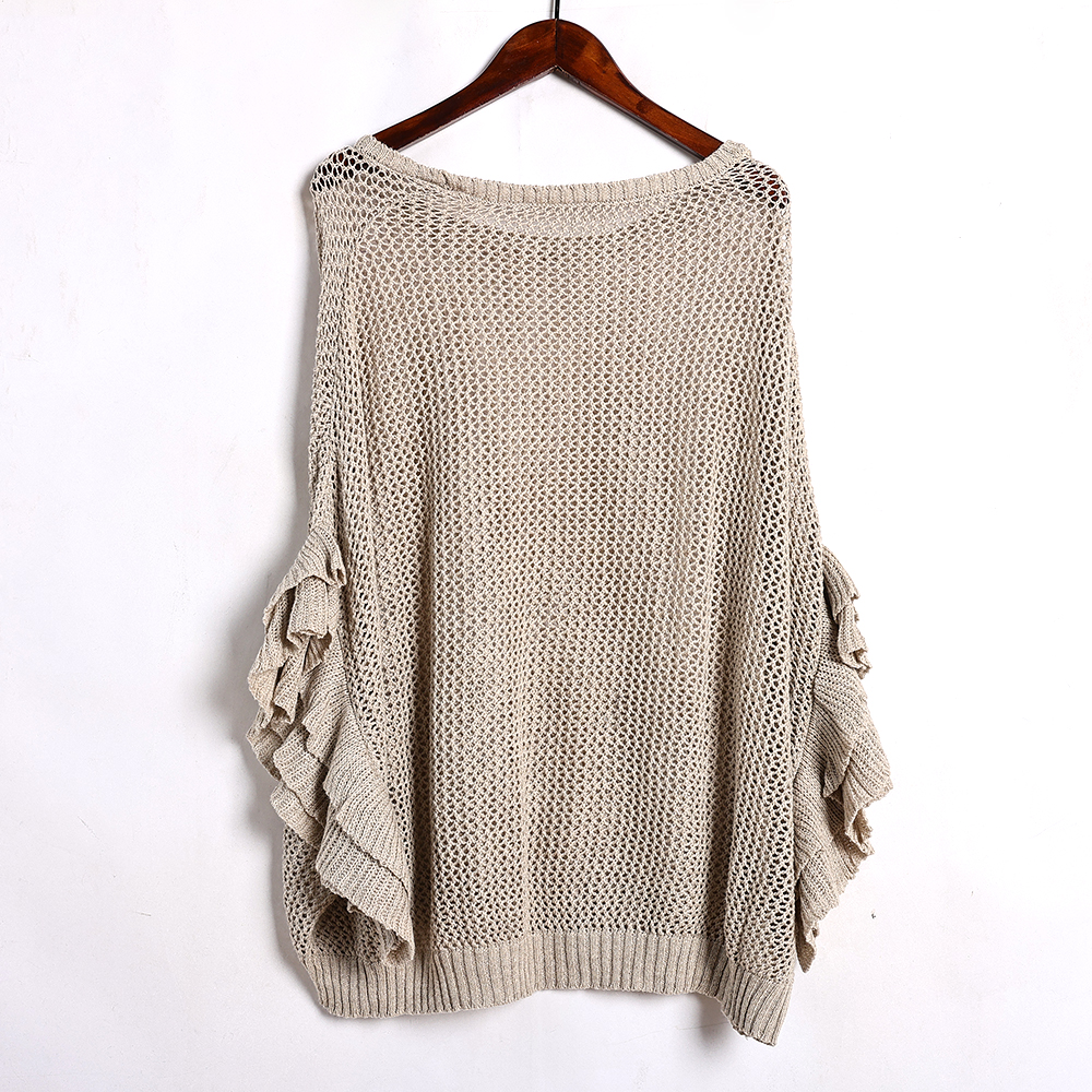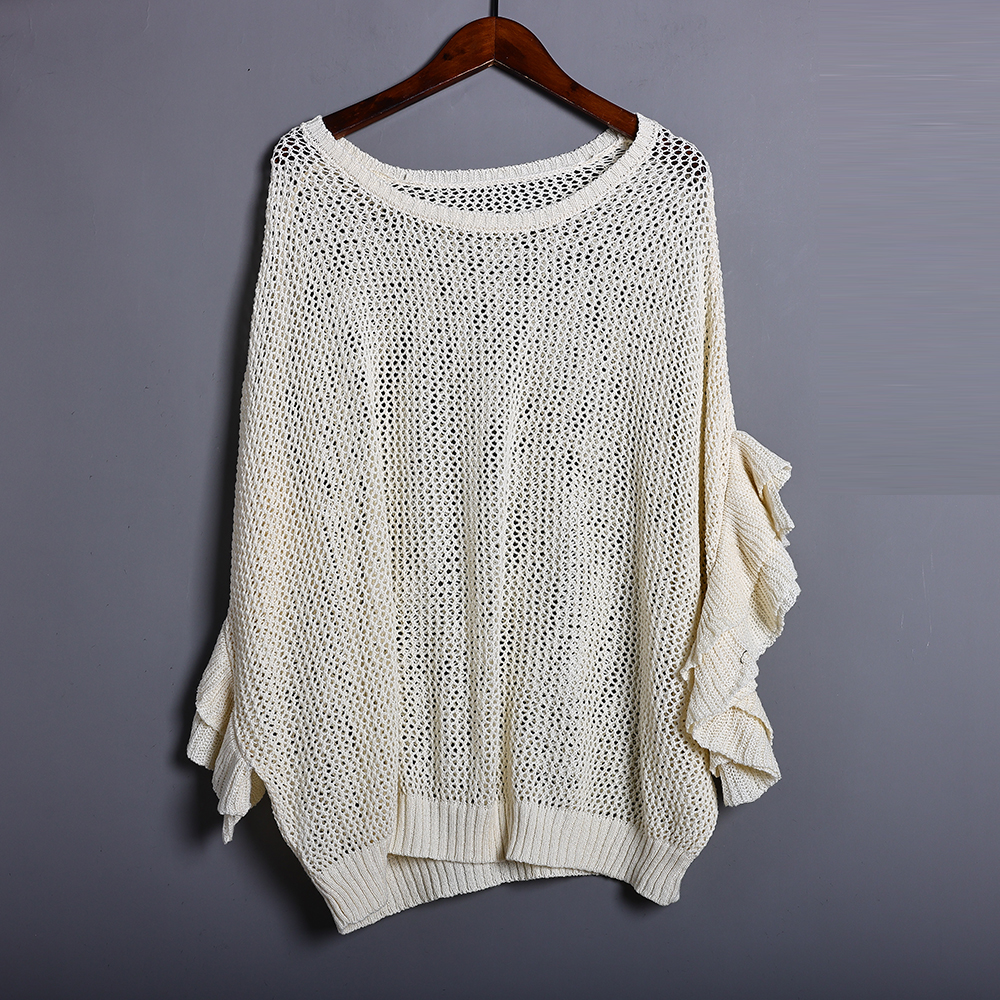 短袖针织衫女2025年春夏季新品女装圆领套头宽松镂空蝙蝠袖上衣潮