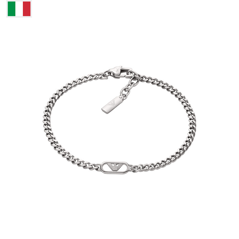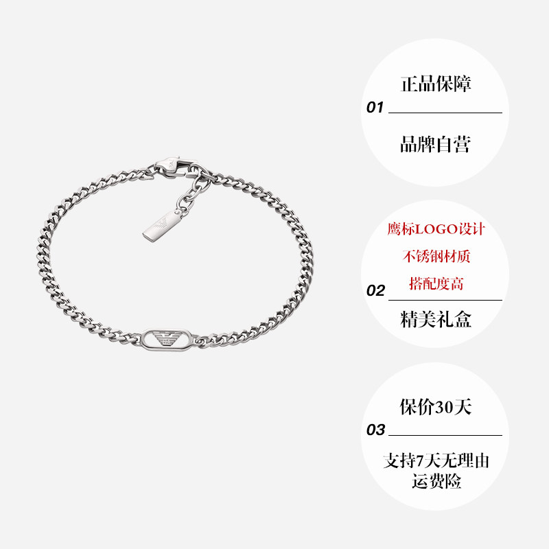 【自营】Armani阿玛尼LOGO系列手链男鹰标古巴简约银色送男生礼物