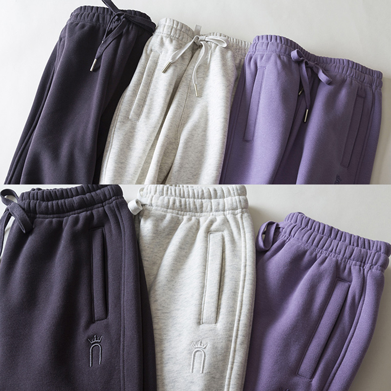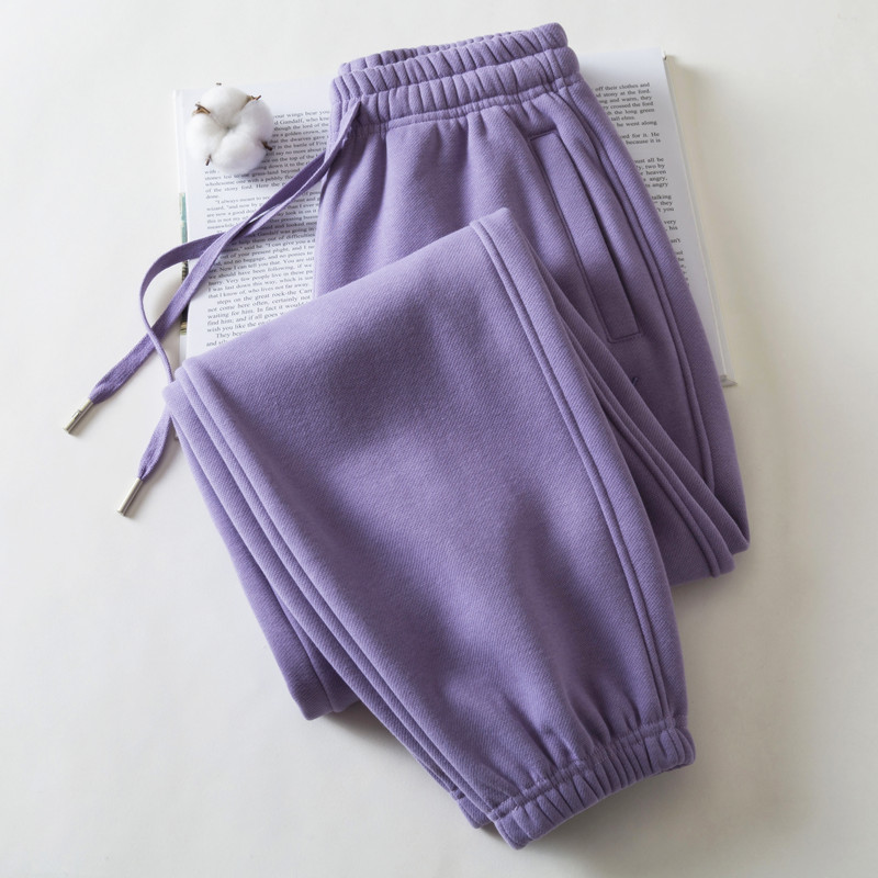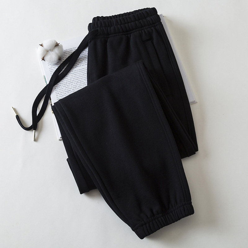 秋冬新款厚款高品纯棉卫裤女士宽松束口裤韩系休闲裤运动长裤九分