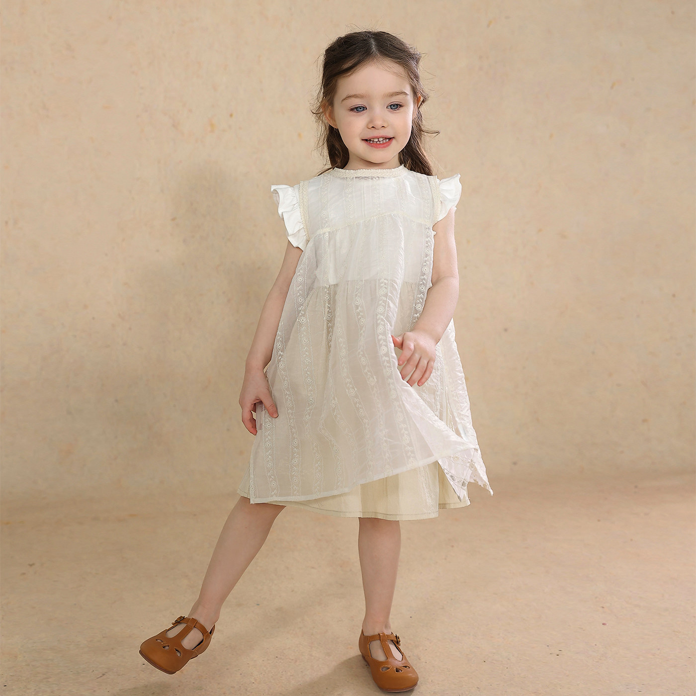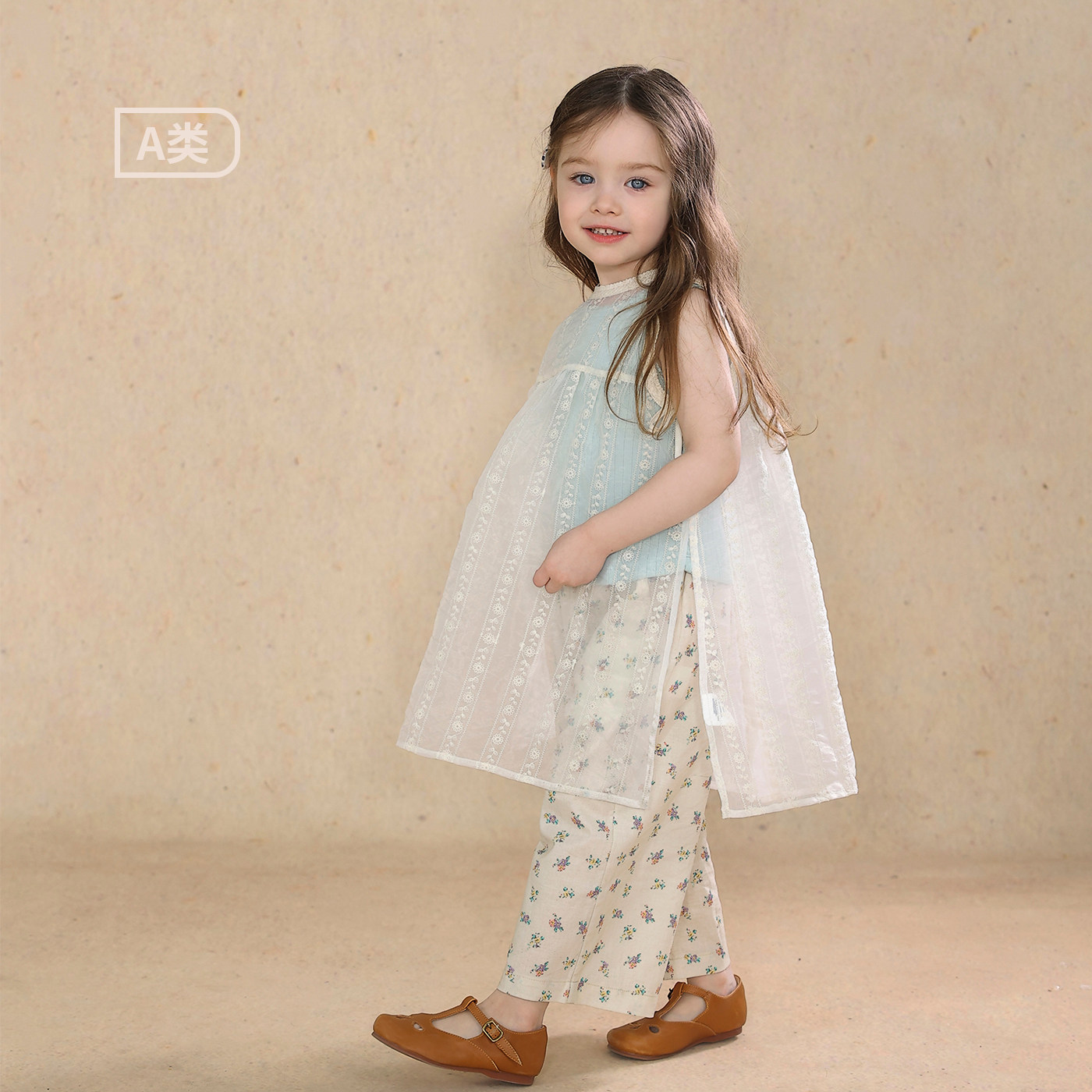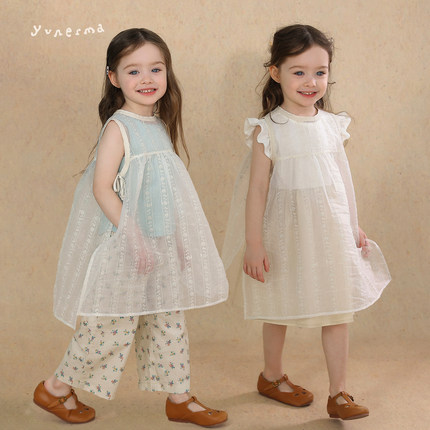 允儿妈女童韩系小众刺绣蕾丝罩裙背心裙宝宝洋气连衣裙儿童套装潮