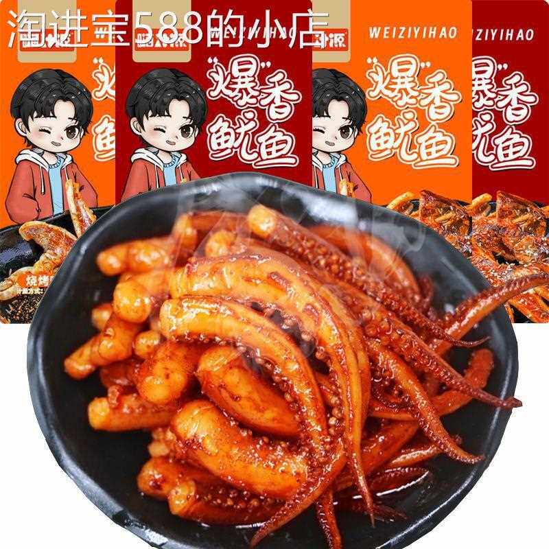 嗨汁源爆香鱿鱼混合味香菇鱿鱼香辣烧烤味开袋即食零食小吃十月