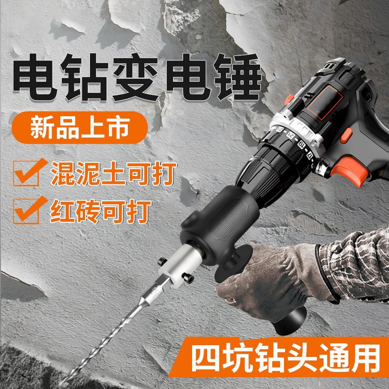 手电钻改电锤冲击钻家用水泥墙打孔混凝土大功率轻型小型转换头