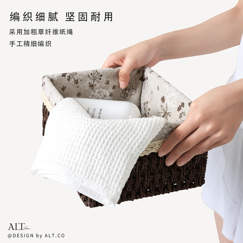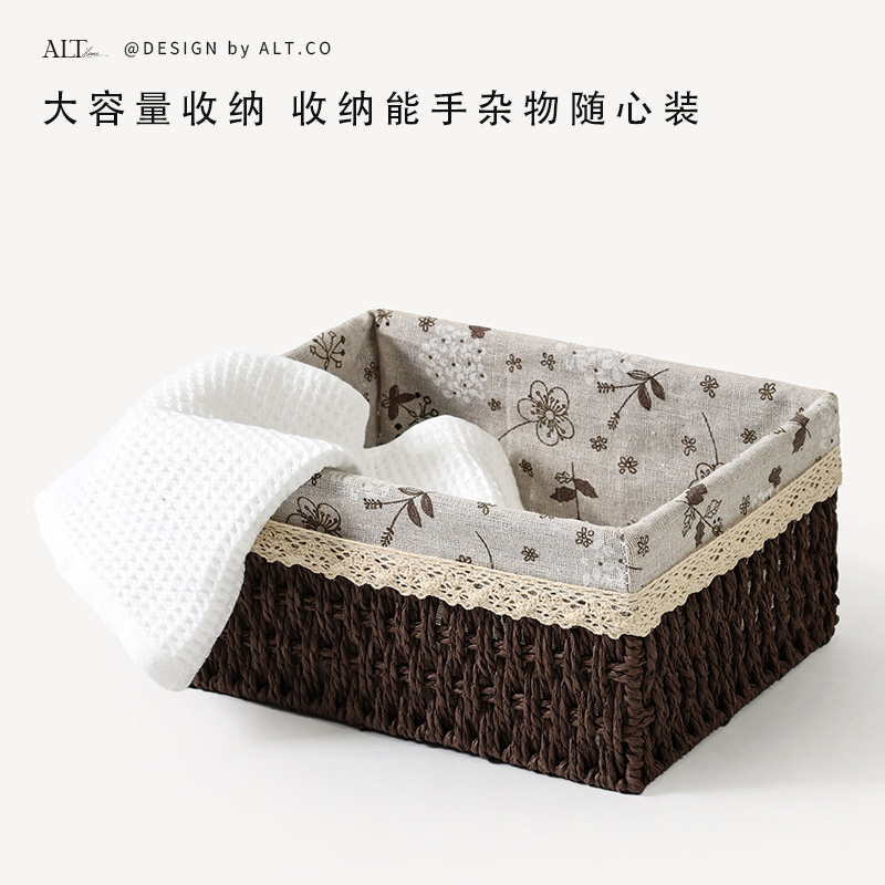 桌面收纳筐客厅茶几遥控器杂物收纳盒家用手工编织收纳整理储物篮