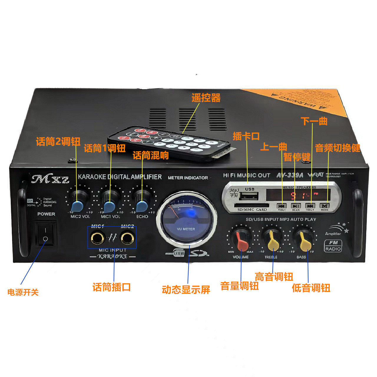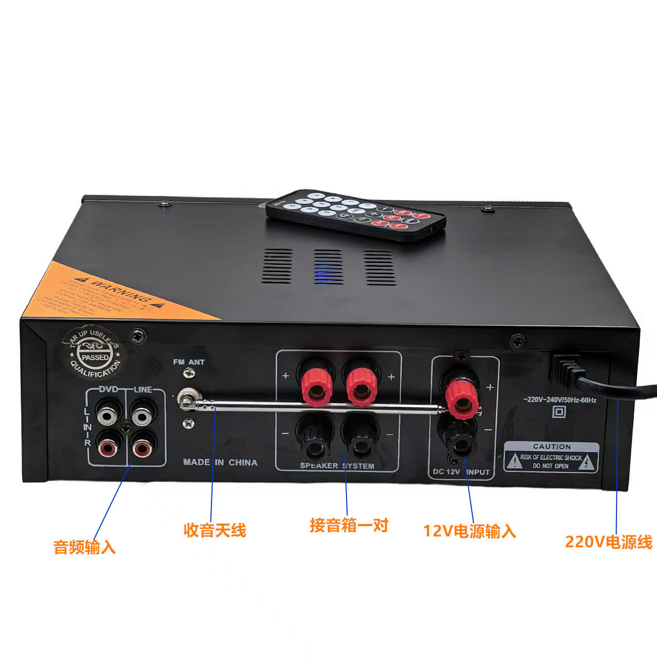 大功率功放机家用12V/220VU盘插卡FM专业调音无损解码K歌功放大器