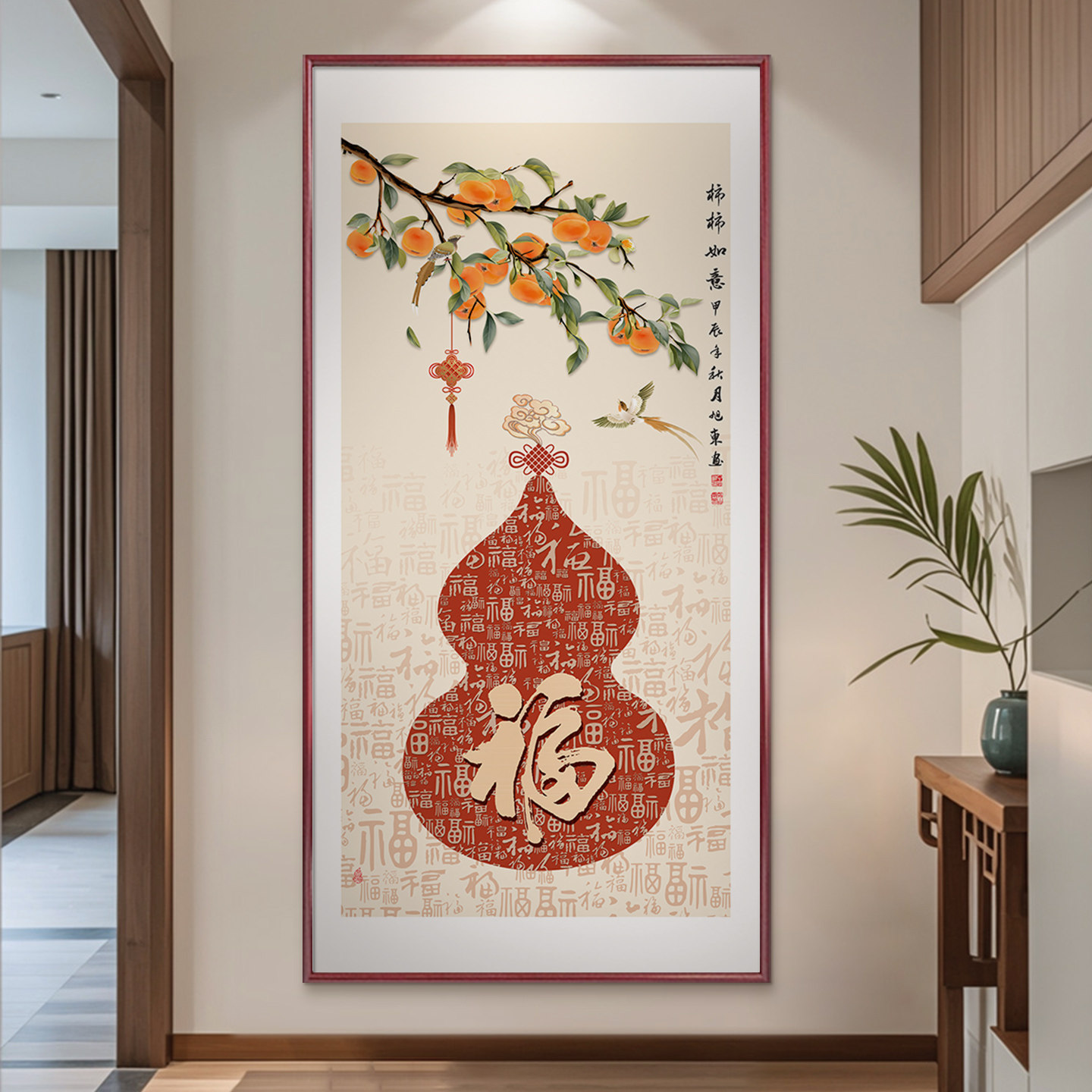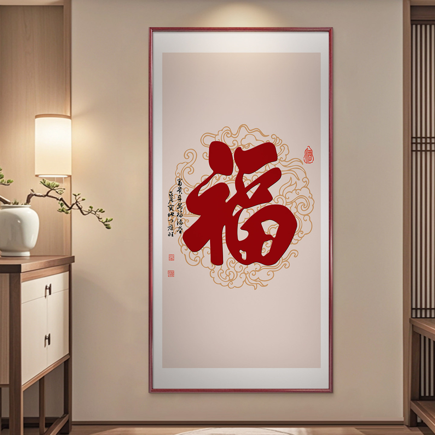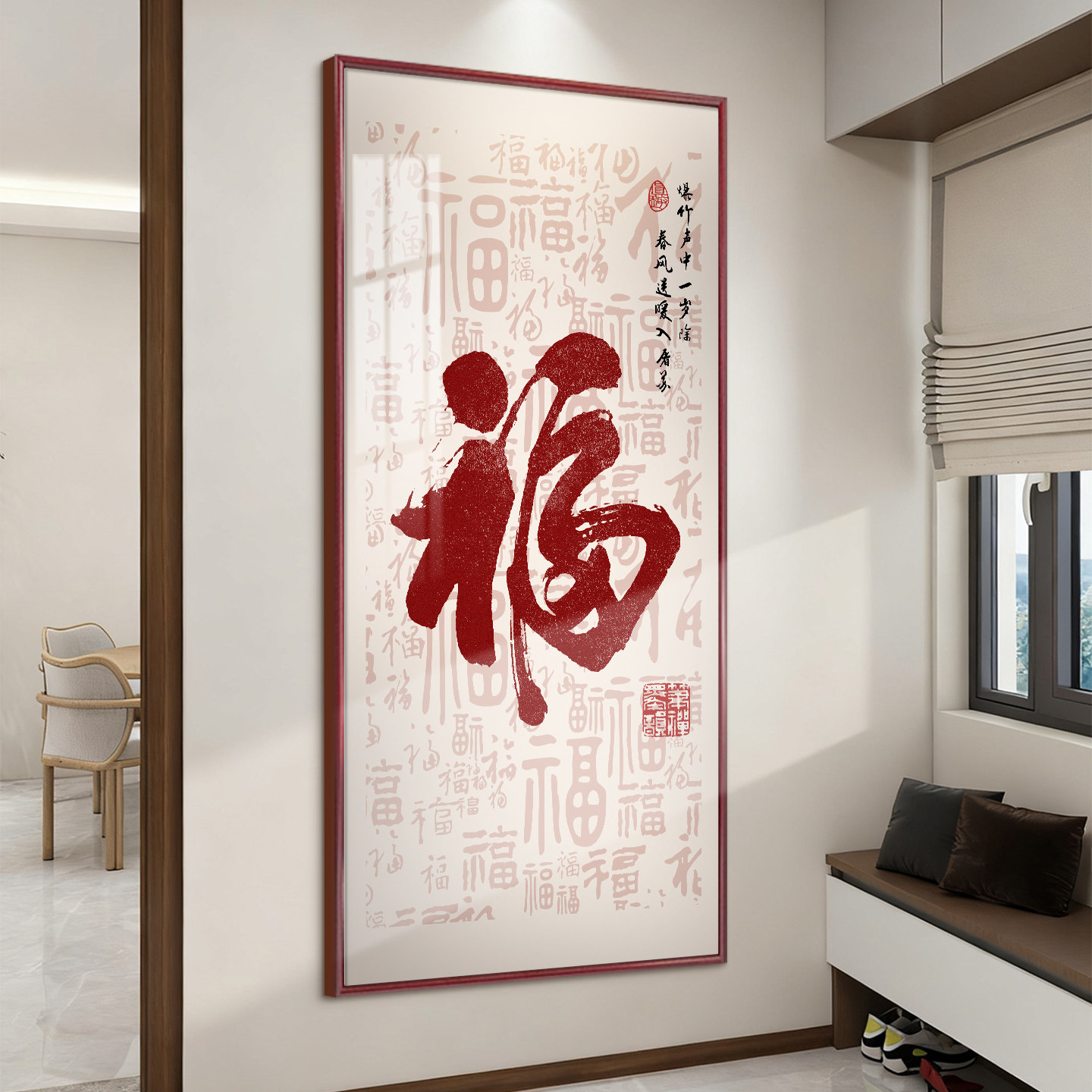 百福图新中式入户玄关装饰画福字画进门走廊过道竖版挂画客厅壁画