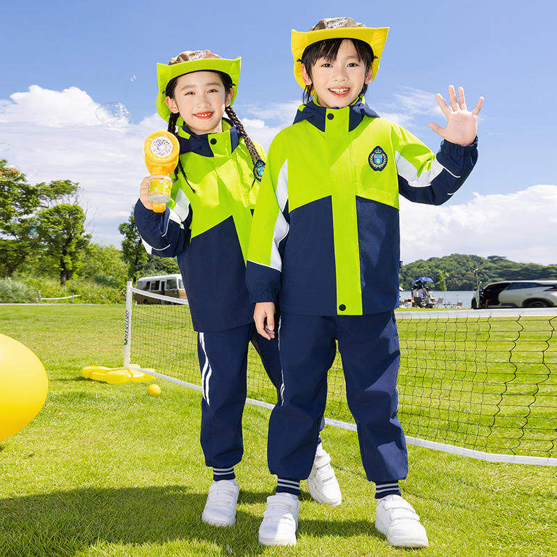 幼儿园园服秋冬套装儿童班服冲锋衣三件套加绒加厚小学生校服冬装