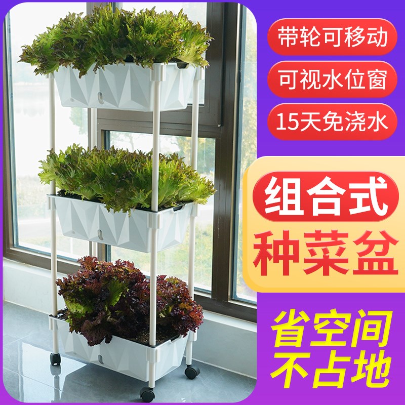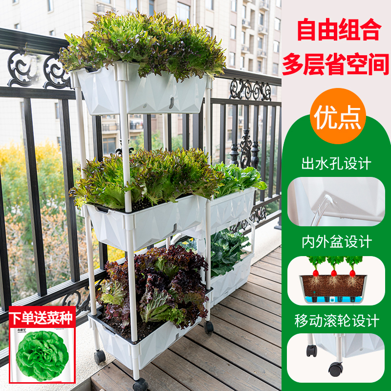 阳台多层种菜盆组合种植箱立体省空间自吸水塑料花盆架种菜神器