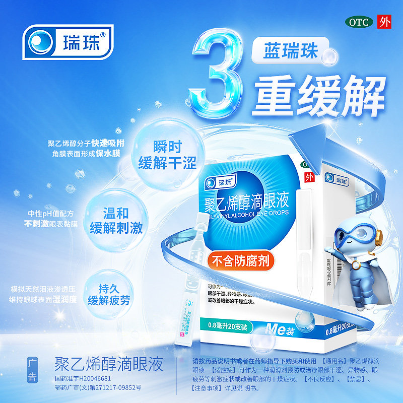 瑞珠聚乙烯醇滴眼液20支人工泪液润眼液缓解眼干眼症眼疲劳眼药水