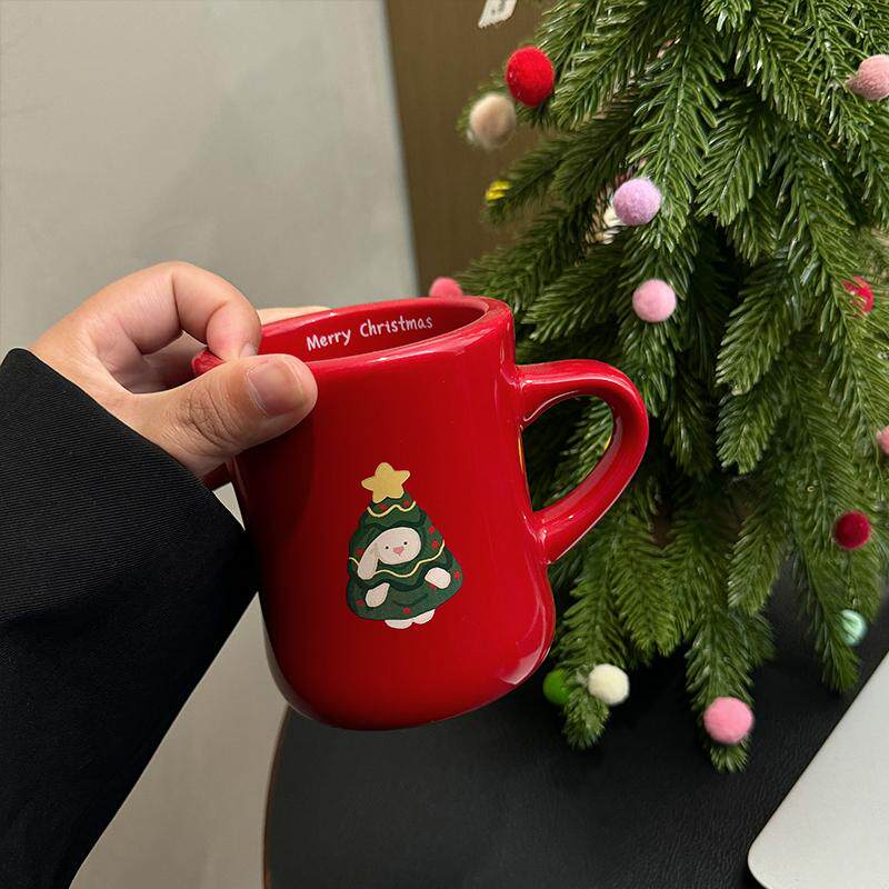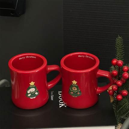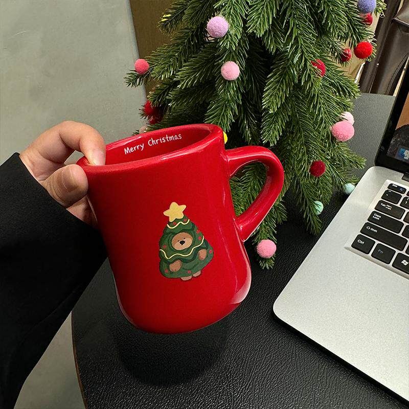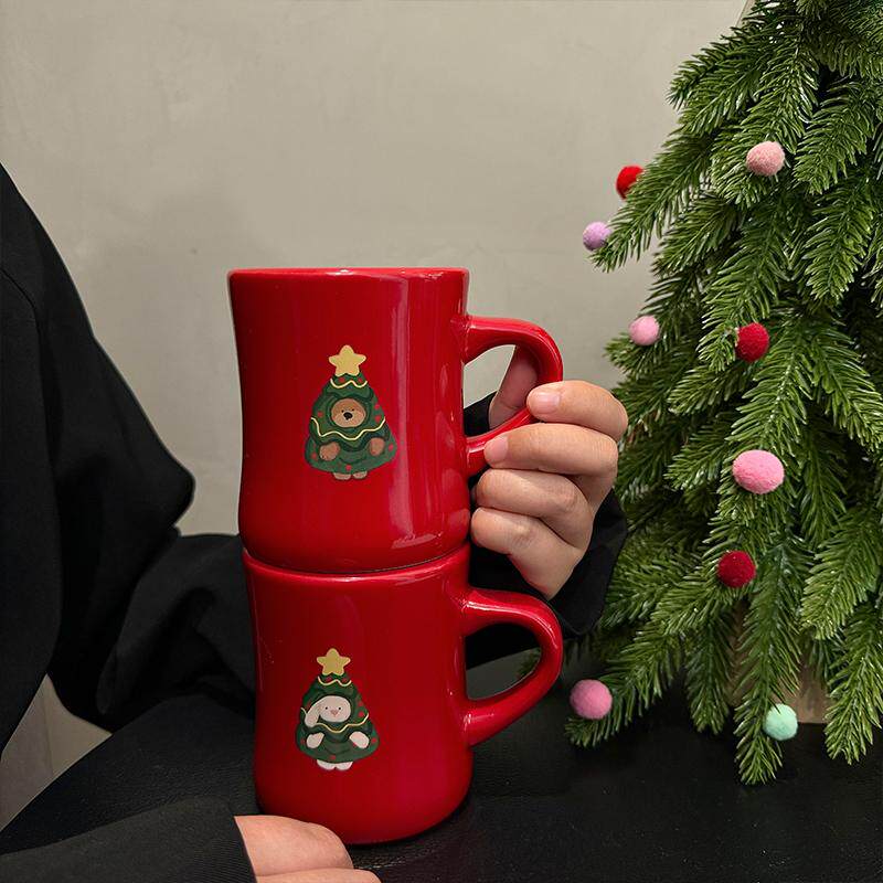 圣诞礼物水杯小熊小兔圣诞树收腰杯马克杯情侣学生350ml陶瓷杯子