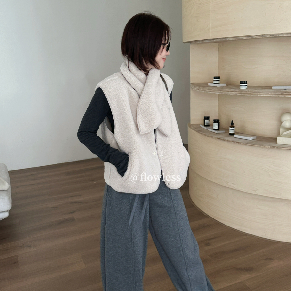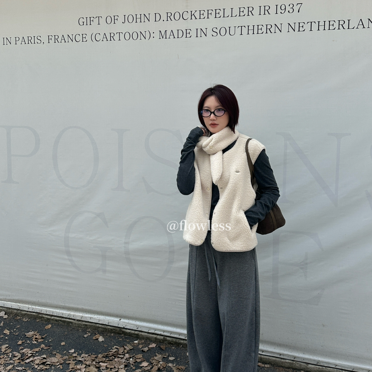 云朵冬上新法式复古毛绒设计感冬马甲配围脖81181