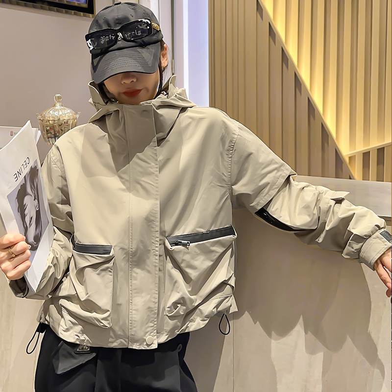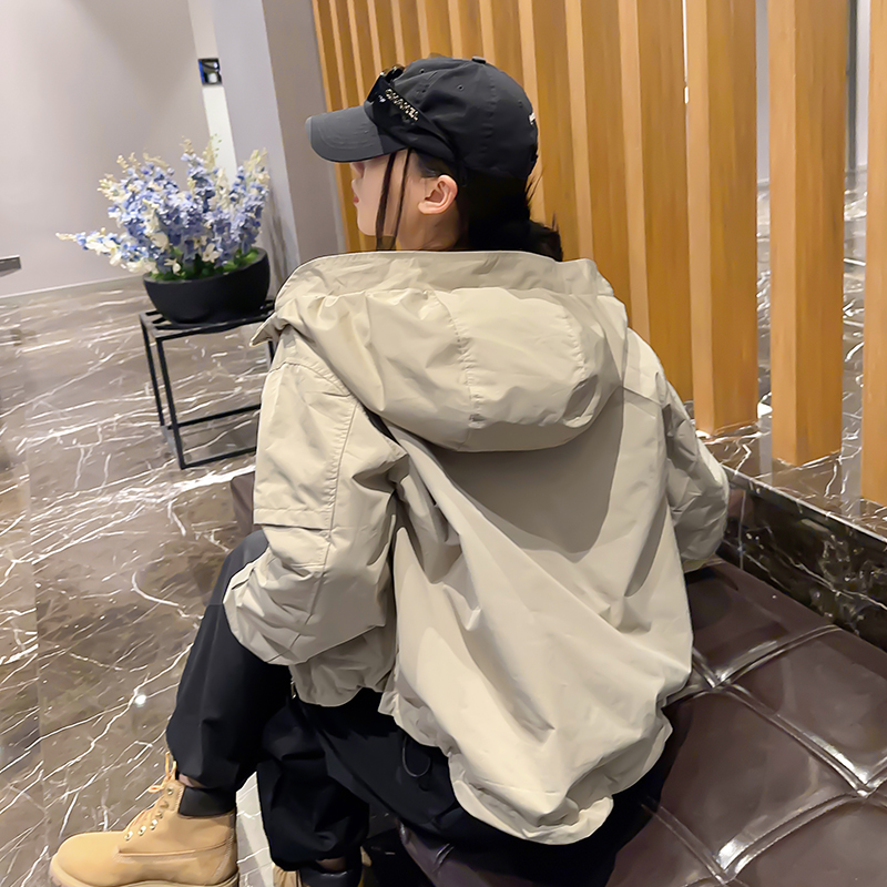 春秋2025新款女装休闲短款外套小个子连帽风衣洋气夹棉冲锋衣夹克