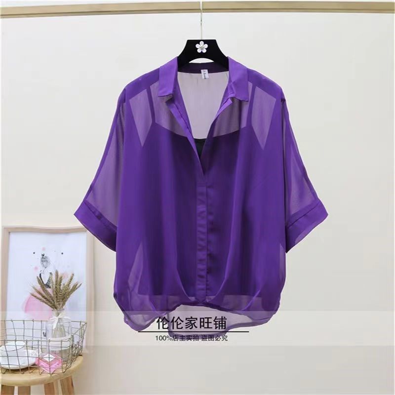 大码宽松遮肚子女装2024新款胖mm衬衫短袖妈妈雪纺衫女士夏季上衣