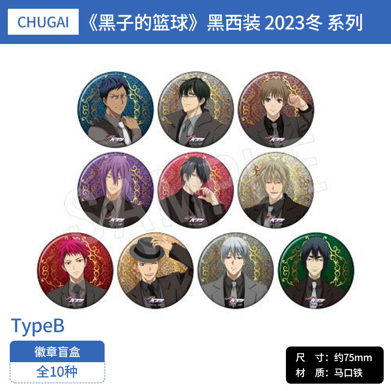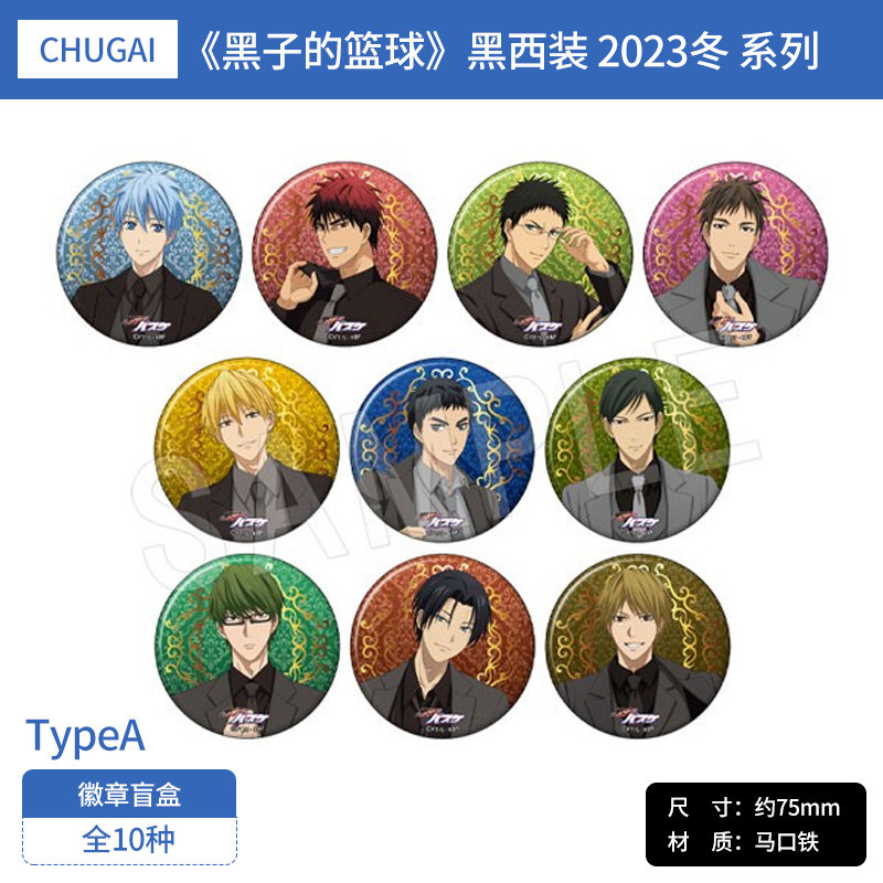 有货 日本正版 黑子的篮球烫金哑光徽章盲盒套组黑西装2023冬周边