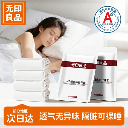 无印良品酒店一次性床上四件套床单被罩枕套旅行旅游双人加厚隔脏