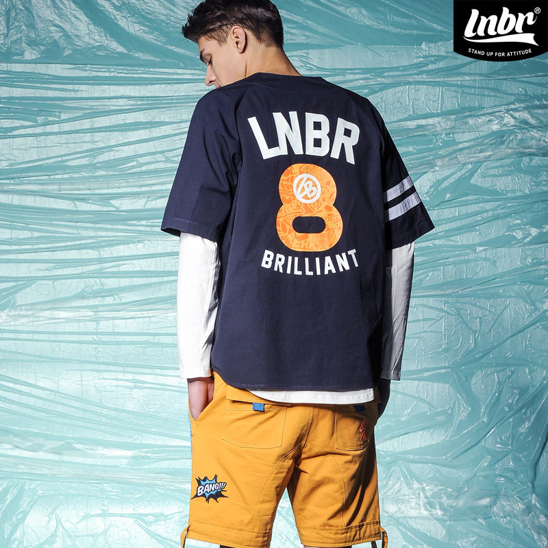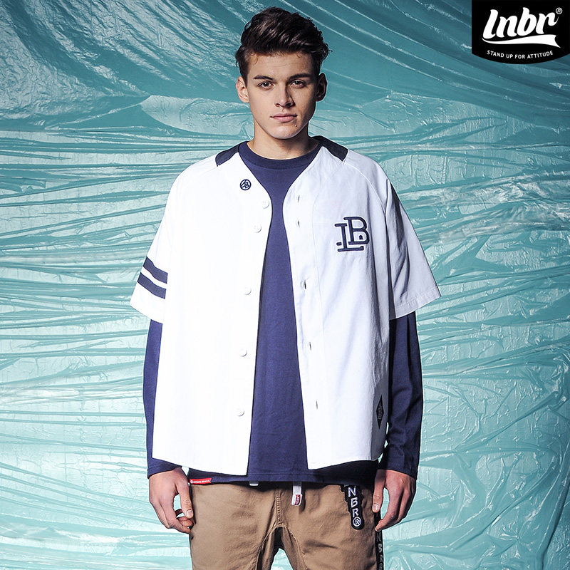 LNBR原创潮牌男女字母印花短袖衬衫青年纯棉宽松时尚棒球衬衣