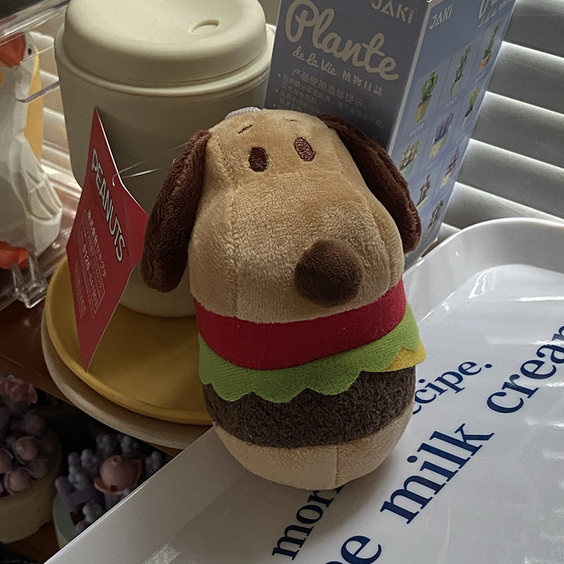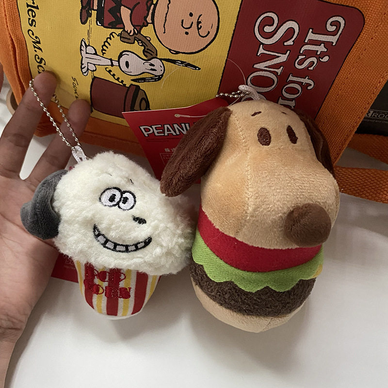 史努比汉堡爆米花包挂件 汉堡狗钥匙扣卡通毛绒玩具装饰挂件GJ04