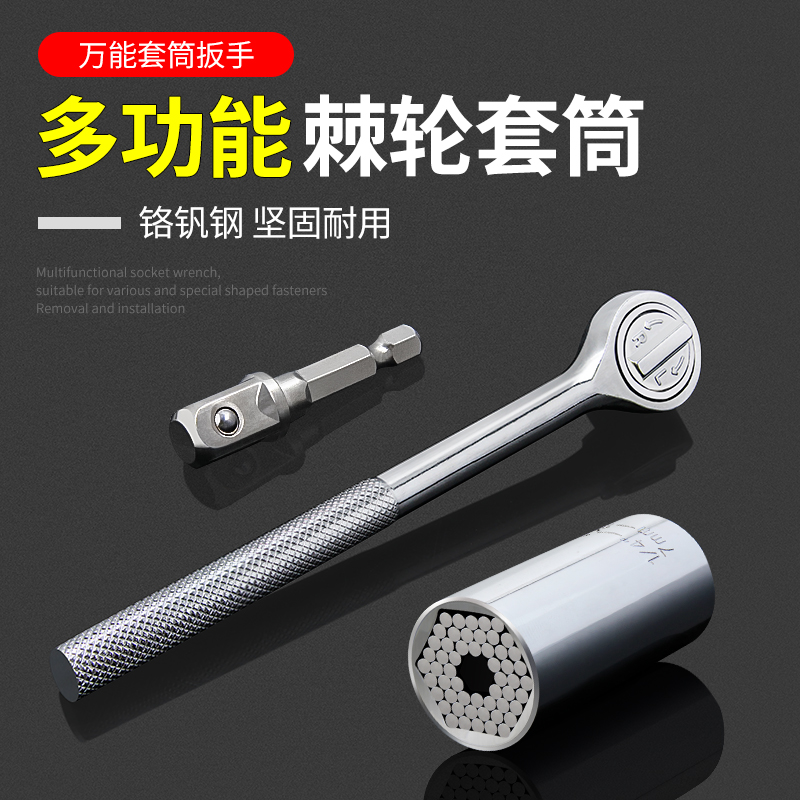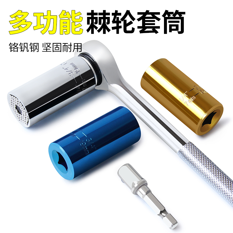 万能套筒多功能电动万用套筒扳手电钻套筒头大飞中飞棘轮扳手套装