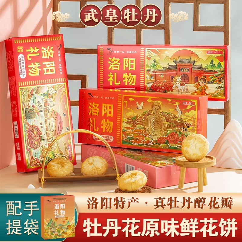 武皇牡丹鲜花饼洛阳特产原味牡丹酥饼河南特色传统糕点伴手礼盒装