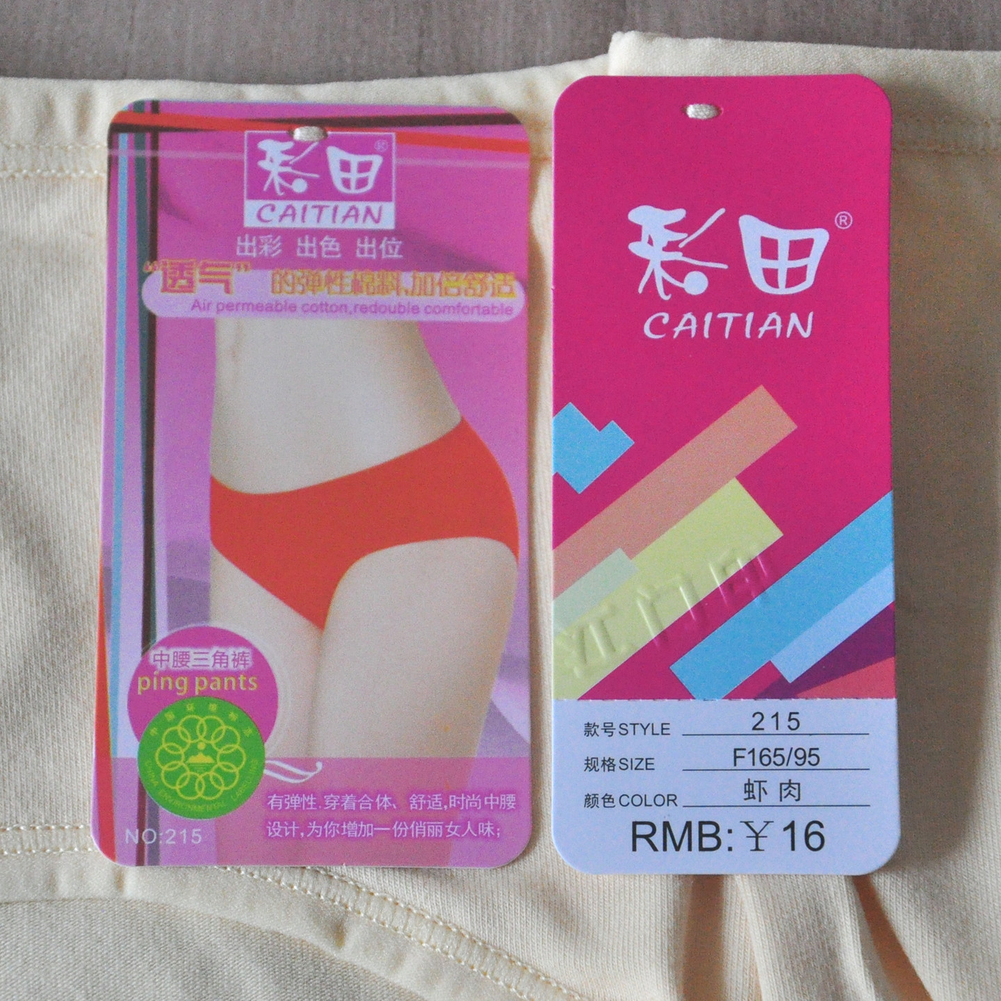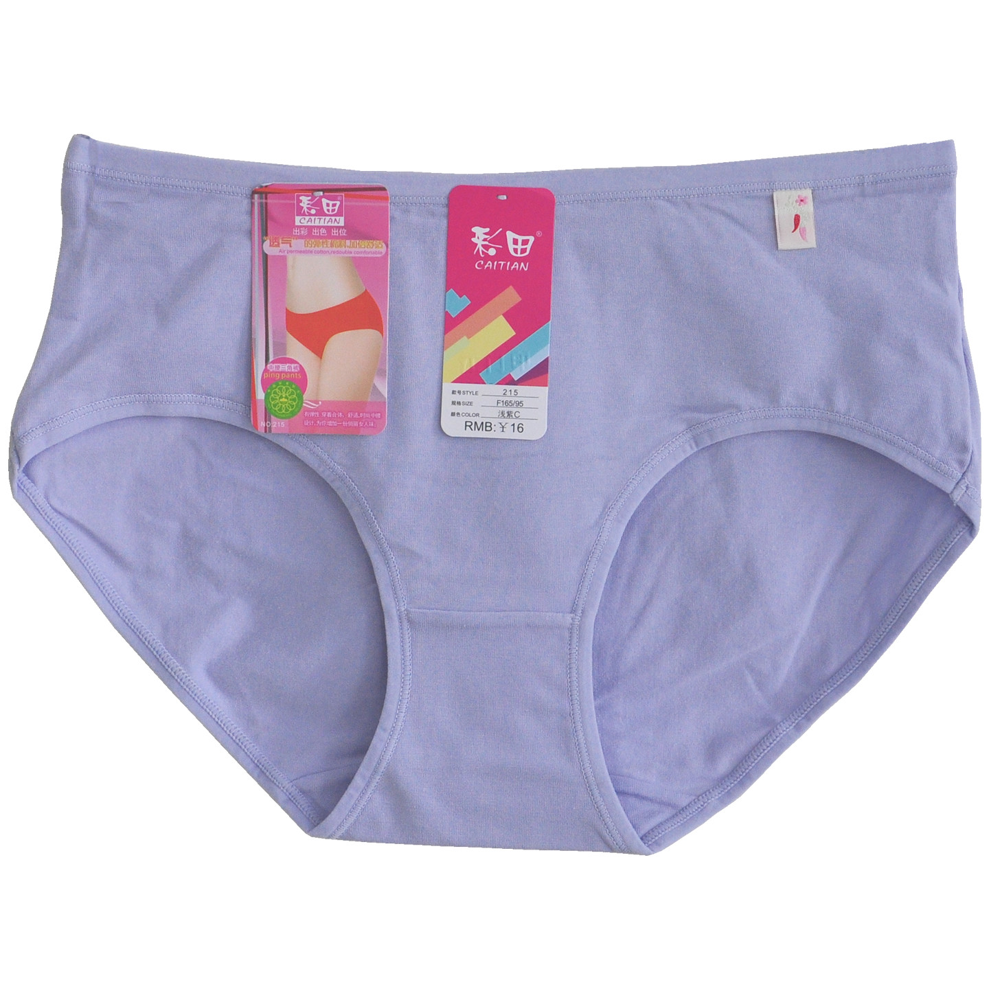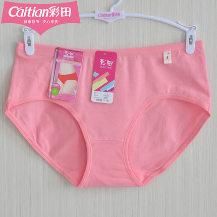 三条装彩田正品215纯色包臀中腰女内裤简约棉质透气吸汗健康