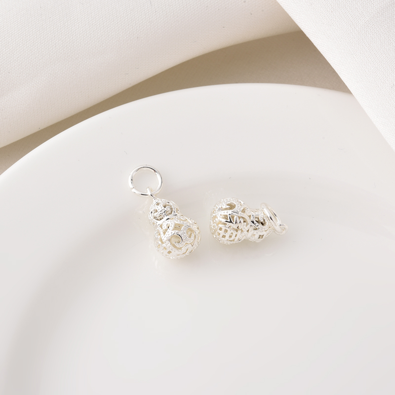 高保铜镀18K金镂空葫芦吊坠手工diy水晶手链项链西瓜珠银色吊饰