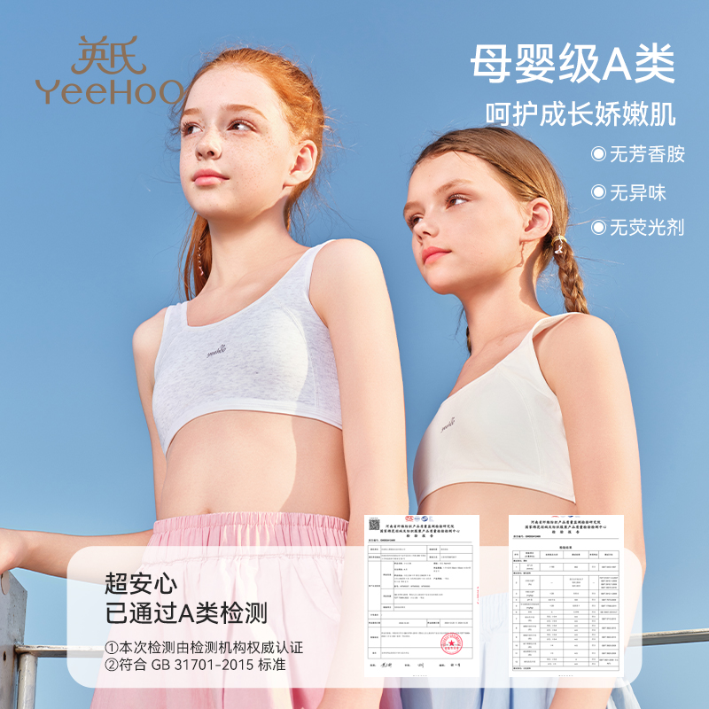 英氏儿童内衣女童发育期纯棉文胸小中大童防凸点小背心透气二阶段