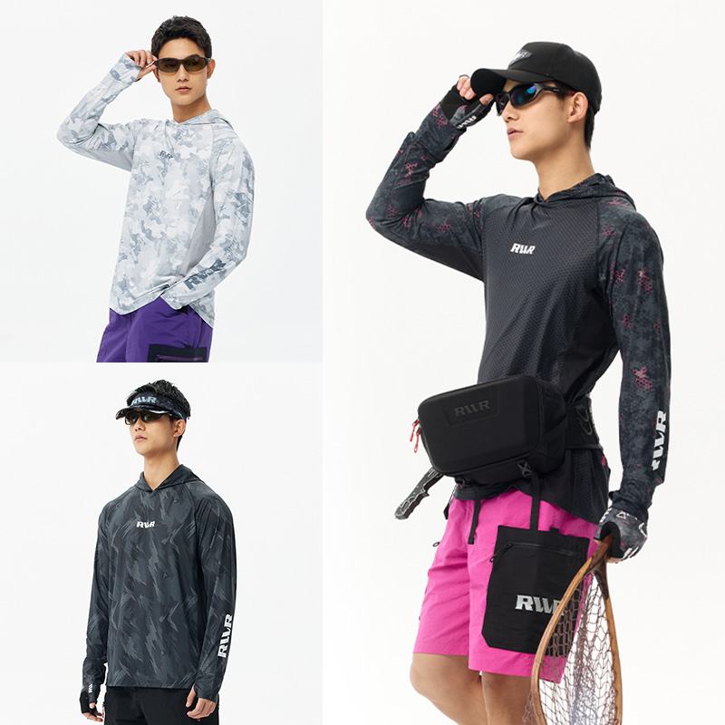 25款RVVR户外路亚凉感防晒服透气防紫外线高弹性连帽防晒衣速干服