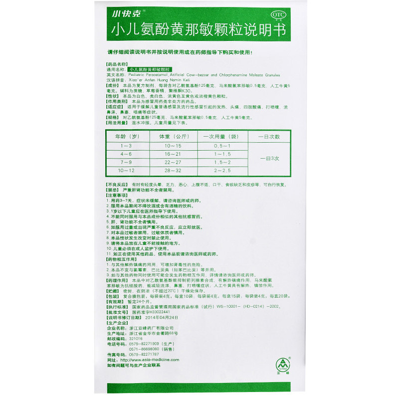【小快克】小儿氨酚黄那敏颗粒4g*10袋/盒