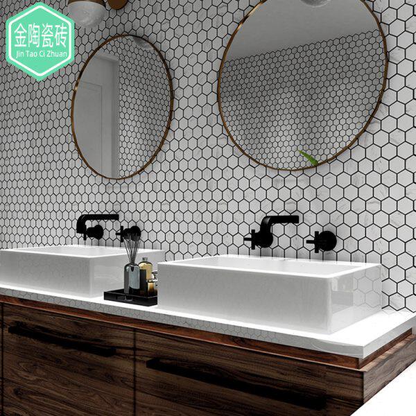 金陶瓷砖厨房卫生间爵士白六角陶瓷马赛克阳台浴室背景墙防滑地砖