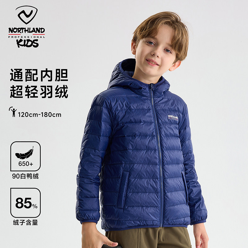 诺诗兰童装儿童轻薄羽绒服2024秋冬新款男女童青少年羽绒连帽外套