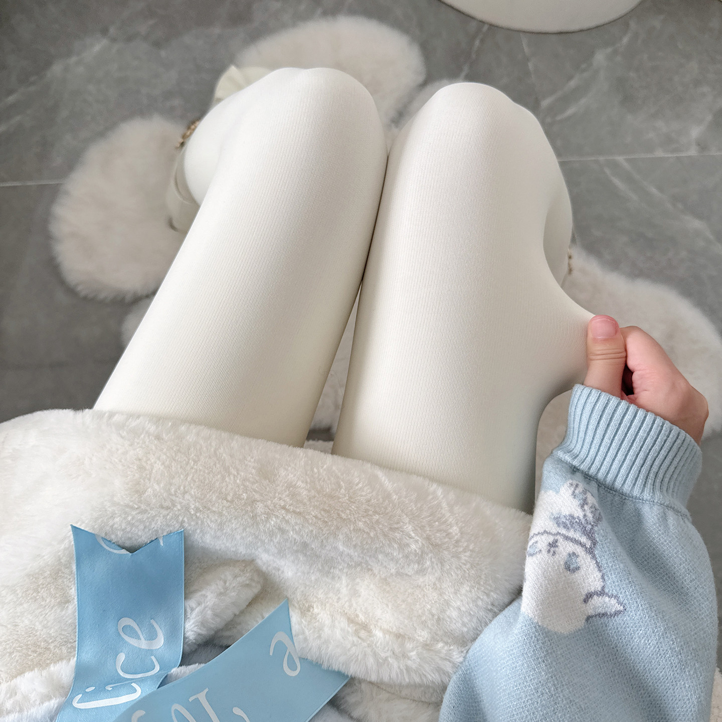 Lolita白色打底袜秋冬加厚羊毛绒