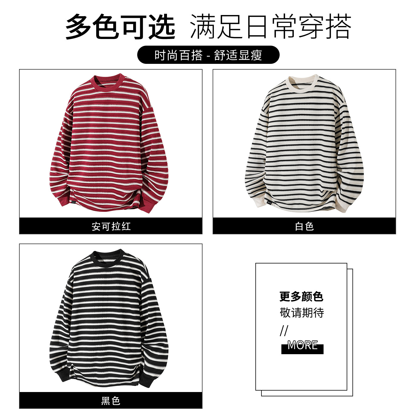 it :5cm/FIVECM红色条纹圆领套头卫衣男士2025春秋宽松打底衫上衣