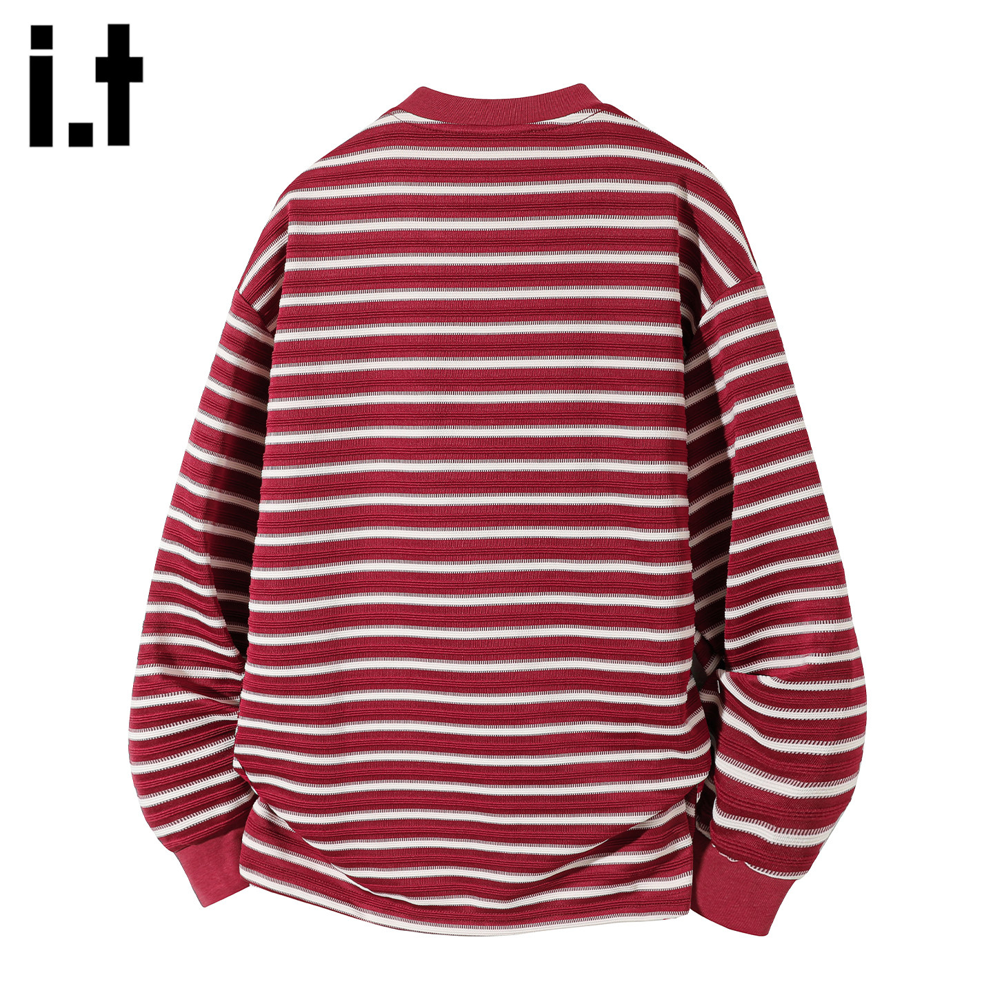 IT'S5cm红色条纹圆领套头卫衣