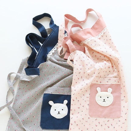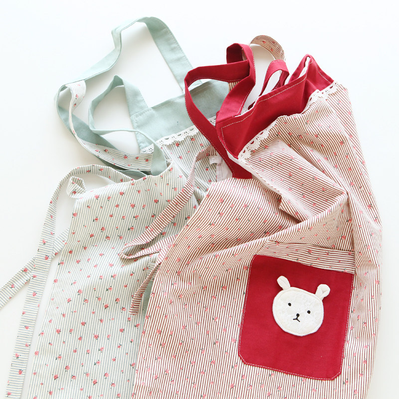 8626田园可爱涤棉碎花家用厨房做饭罩衣女士双层防水轻便背心围裙